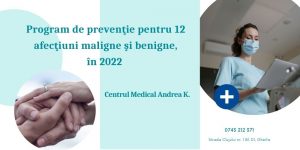Atunci când am gândit şi construit tot ceea ce reprezintă Centrul Medical Andrea K., ne-am propus să fim activi, să venim noi înspre comunitate cu informaţii medicale periodice (o formă de educaţie medicală) şi servicii medicale de prevenţie şi diagnostic precoce a unor boli. Ştim, sună pompos, dar, pe scurt, înseamnă să vă ajutăm să … Continuă lectura Program de screening pentru 12 afecţiuni maligne şi benigne